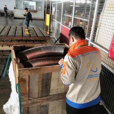 Trong hình là ống 8 inch (219.08mm), vật liệu SS316L, độ dày SCH10 (3.76mm), bán kính cong 5D (5D bend 90° Elbow) = 5*219.08 = 1095.4mm hoặc các size theo yêu cầu.